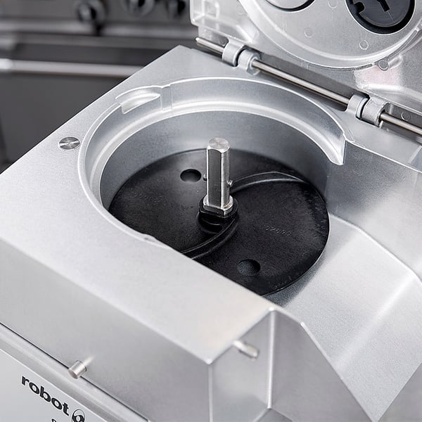 Помещается в рабочую камеру профессиональной овощерезки на вал двигателя, после использования легко