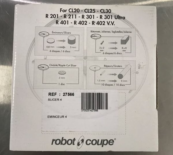 Диск-слайсер Robot Coupe 27566 совместим с овощерезками для ресторана CL 20, CL 30 Bistro, CL 40 и кухонными процессорами R211XL, R211 Ultra, R 301 Ultra, R402.
