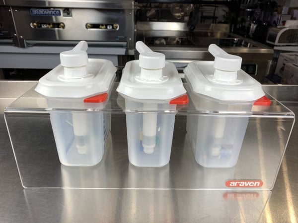 Диспенсер для кетчупа с подставкой Araven относится к сегменту профессионального кухонного инвентаря для кафе, фаст-фудов и других предприятий общественного питания. Используется для всевозможных заправок более легких или густых, соусов, сиропов и т.д. Диспенсер позволяет аккуратно поместить соус в более маленький объем бутылки или нанести соус на готовый хот-дог.