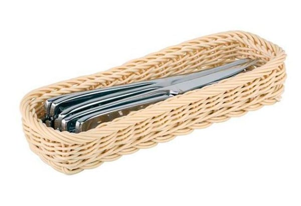 Контейнер бежевого цвета для столовых приборов изготовлена из полипропилена.