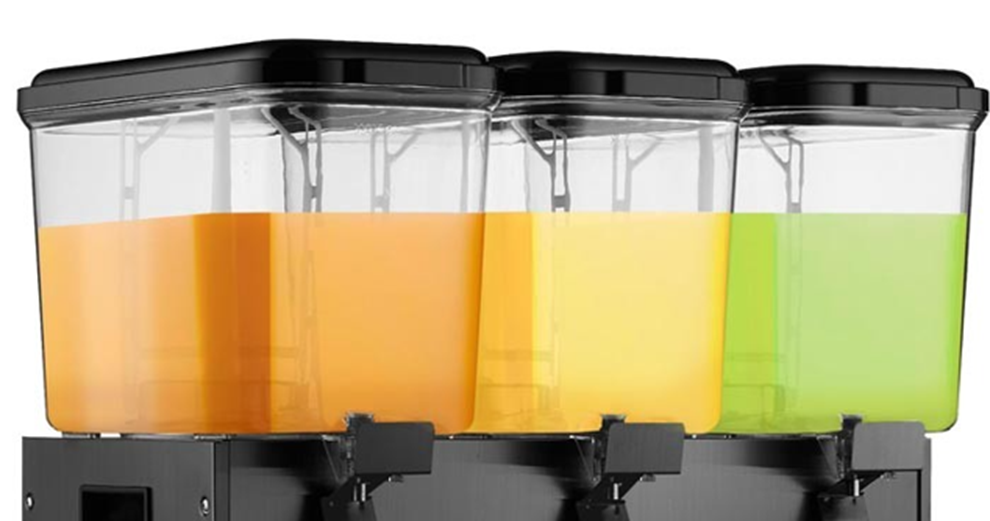 В сокоохладителе три 10-литровых резервуара с краном для легкого порционирования. Колба изготовлена из прозрачного пищевого поликарбоната, легко снимается, что значительно облегчает чистку, корпус изготовлен из высококачественной нержавеющей стали. При заливе напитка в бункер следите за уровнем. Запрещается заливать в бункер напиток выше допустимого уровня. Это может привести к попаданию жидкости в перемешивающий механизм и вывести оборудование из строя. Цикл охлаждения должен всегда завершаться в штатном режиме. Поэтому оборудование необходимо перезапустить в течение 5 минут после случайного отключения и выключить, если необходимо, с помощью переключателя.