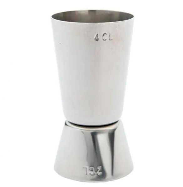 Барный джиггер изготовлен из нержавеющей стали 18/10, он состоит из двух стаканчиков в виде конуса, они разные по объему и выглядят, как песочные часы.