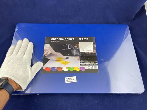 Пластикова дошка виконана в стандартному розмірі 500х300х20 синього кольору. Відповідає вимогам системи НАССР.