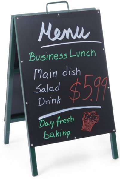 Меловой штендер - мобильная конструкция, на которой можно многократно писать разные рекламные объявления, оригинальные надписи и шутки.