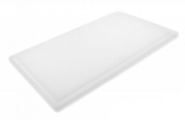 Пластиковая доска выполнена размером 500х300х18 мм в белом цвете, соответствует международным стандартам HACCP и имеет все необходимые сертификаты.