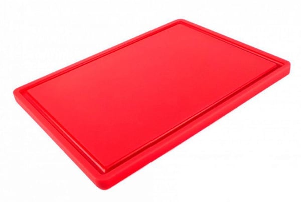 Согласно цветовой кодировке принятой в пищевой отрасли красная кухонная доска применяется для нарезки сырого мяса.