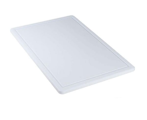 Пластиковая доска выполнена размером 600х400х18 мм в белом цвете, соответствует международным стандартам HACCP и имеет все необходимые сертификаты.