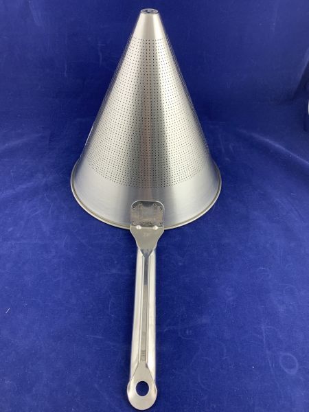 Дуршлаг конический с мелкой сеткой имеет крепкую конструкцию с широкой окантовкой, которая способствует осторожному использованию - жидкость не вытекает, уберегает персонал от травмирования.