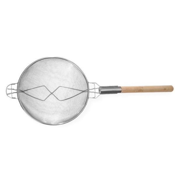 Дуршлаг сетчатый, для процеживания, выполнен из луженой стали. Имеет усиленную конструкцию с прочной, крепкой ручкой.