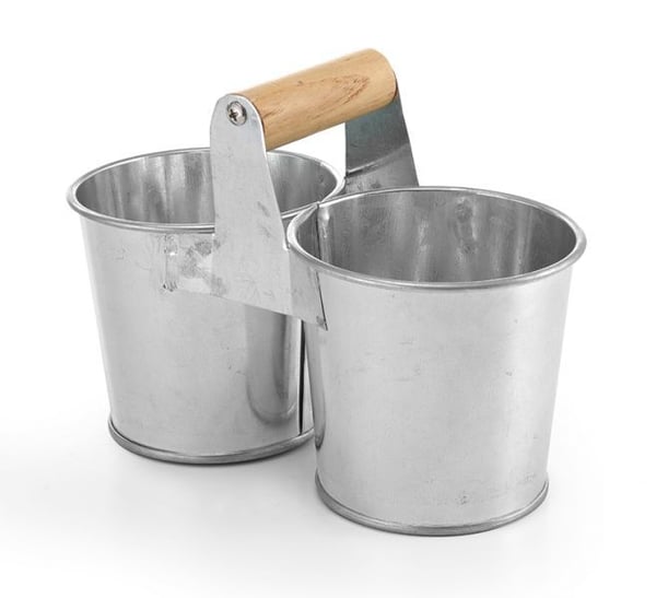 Двойное ведерко из оцинкованнной стали идеально подойдет для подачи столовых приборов и салфеток, станет оригинальным и практичным дополнением любого стола.