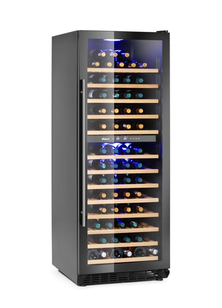 Климатический шкаф для хранения вин Hendi 237564 объемом 387 л – предназначен для охлаждения и длительного хранения разных сортов вина, поддерживая уровень влаги, способствуя созреванию вина, защищая его от вибраций и внешнего воздействия. Двухзонный холодильник Arktic на 135 бутылок – это уникальный холодильный агрегат большой емкости с элегантным современным дизайном. Широкий диапазон температур делает его идеальным для хранения вина, например Бордо, Риоха, Совиньон или Просекко.