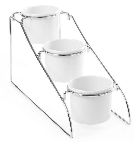 Экпозитор для продуктов, на подставке. Включает в себя три емкости по одному литру, с диаметром 120 мм, выполненных из меламина.