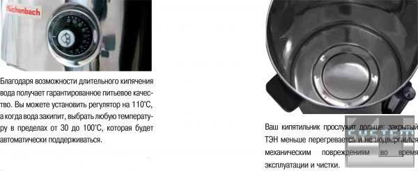 Гарантированное кипячение, термостат 30 -110°C.