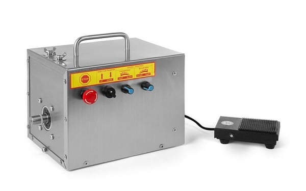 Управление происходит при помощи ножной педали, есть возможность регулировать скорость.