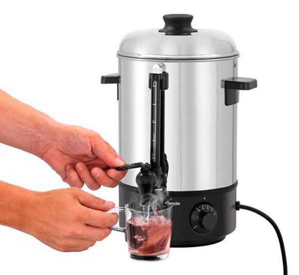 Оснащен сливным краном, выполнен из высококачественной нержавеющей стали, термоизолированые ручки, индикатором уровня воды, который расположен на передней стенке корпуса. Световой индикатор питания и нагрева находится на корпусе. Скрытый ТЭН. Объем - 6 л.