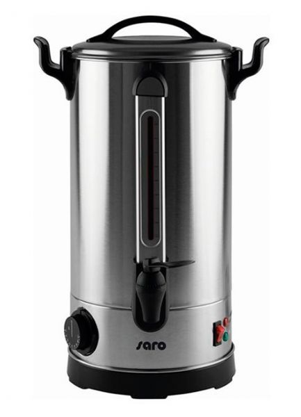 Оснащен сливным краном, термоизолированые ручки, индикатором уровня воды, который расположен на передней стенке корпуса. Индикаторная лампа - обогрев и сохранение тепла. Объем - 9л.