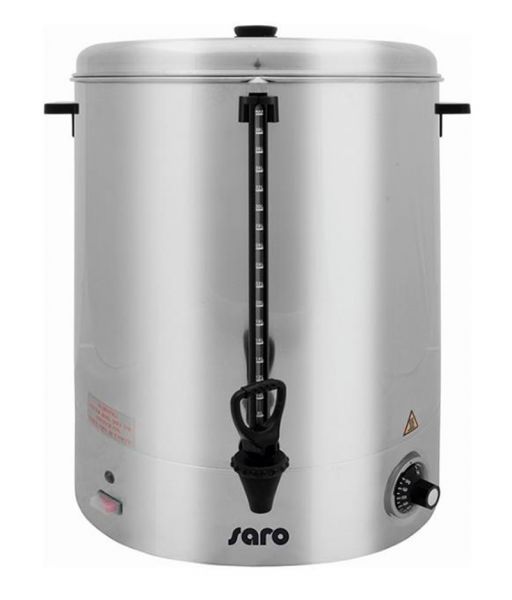 Оснащен сливным краном, термоизолированые ручки, индикатором уровня воды, который расположен на передней стенке корпуса. Индикаторная лампа - обогрев и сохранение тепла. Объем - 40 л.