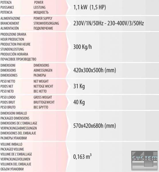 ПОЧАСОВОЕ ПРОИЗВОДСТВО 300 Kg/h