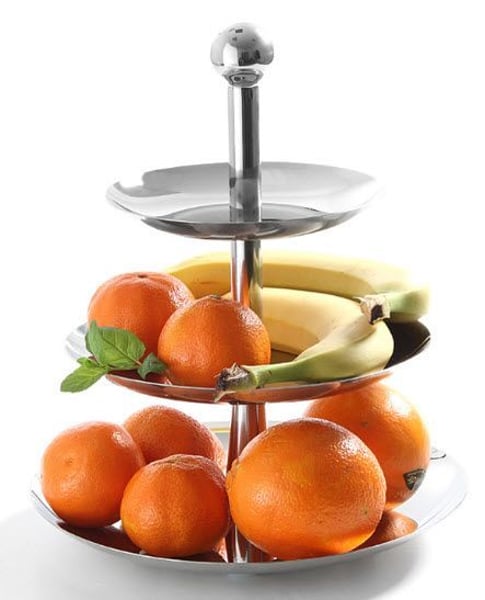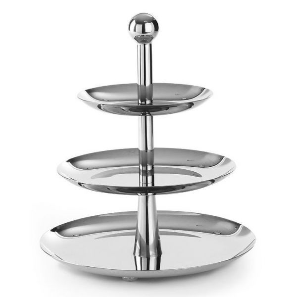 Этажерка для пирожных, выполнена из высококачественной нержавеющей стали, разборная. Три секции диаметрами 268, 220 и 166 мм.