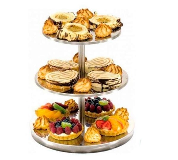 Этажерка для торта предназначена для демонстрации кондитерских изделий, порционных продуктов, холодных закусок,выпечки в ресторане, кондитерской, кафе и других заведениях общепита.