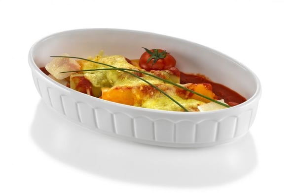 Форма для запекания, овальная, выполнена из очень крепкого, устойчивого к износу и высоким температурам фарфора.