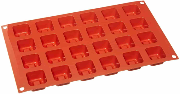 Силиконовая форма SMALL SQUARE SAVARIN Silikomart SF080/C позволяет создавать оригинальные изысканные декоративные элементы десертов, а объем каждой лунки позволяет получить их сразу 24 штуки. Эта форма идеально подходит для создания оригинальных кондитерских изделий: сладкой и соленой выпечки, кексов, мусса, печенья, продуктов холодного приготовления, шоколада и многое другое, предоставляя кондитерам возможность реализовать самые смелые творческие замыслы.
