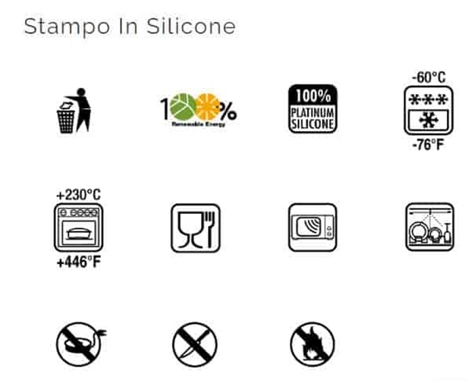 Перед первым использованием силиконовую форму Silikomart следует тщательно очистить, дать высохнуть и смазать жиром или маслом, что не требуется в дальнейшей эксплуатации.