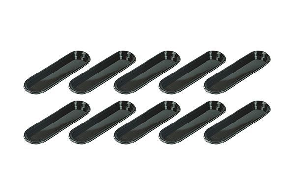 Комплект состоит из шести овальных форм размером 146x35h20мм, изготовленной из недеформируемого композитного термопластичного материала, пригодного для использования в печи для реализации основы, 10 подложек и силиконовой формы, состоящей из шести полостей 133x21 h12мм, что позволяет сделать мусс или крем, чтобы положить на песочное тесто. Овальная форма антипригарная, нержавеющая, допускает однородное приготовление и обладают высокой термостойкостью.