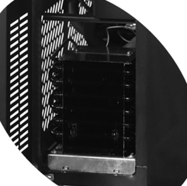 Вентилятор способствует быстрой и равномерной циркуляции холода по всей рабочей поверхности камеры. Пылевой фильтр легко заменяется.