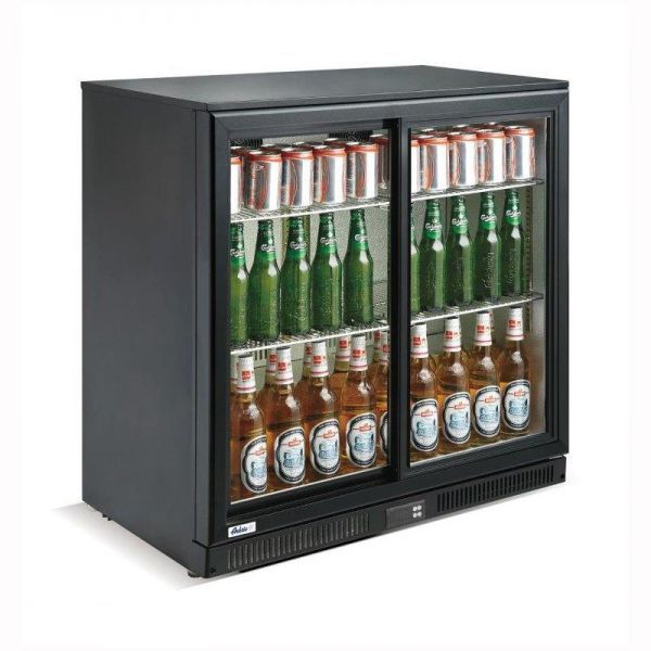 Корпус барного холодильника выполнен из стали, двери раздвижные - из закаленного стекла с пластиковой рамой, а внутренняя часть камеры из экструдированного алюминия, за которым легко ухаживать, соблюдая все гигиенические стандарты в помещениях общественного питания. Также предусмотрены 4 регулируемые нескользящие ножки.