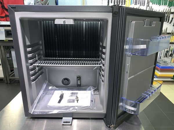Оснащен абсорбционной системой охлаждения, за счет чего обеспечивается бесшумный режим работы минихолодильника для гостиничных номеров. А хорошая термоизоляция мини бар холодильника Тефколд позволяет сократить электрозатраты.