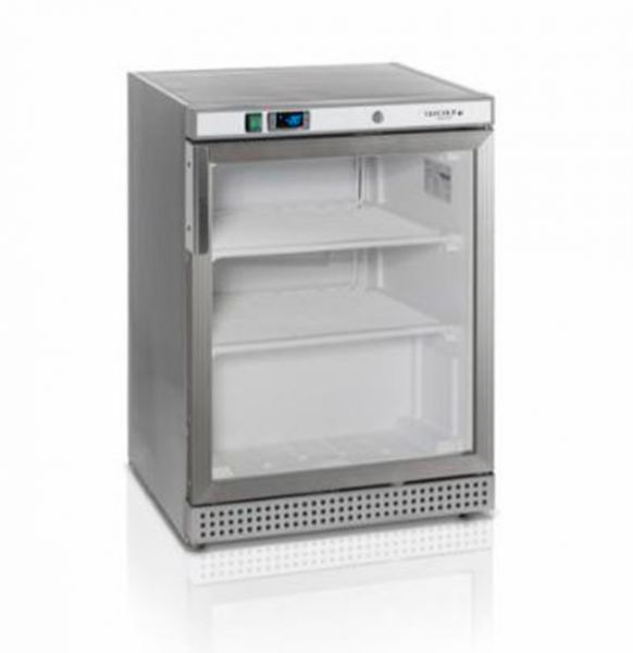 Застекленная конструкция двери и внутреннее освещение камеры выгодно предоставит выкладку товара и тем самым наглядно позволит определить место расположение нужного продукта, не открывая дверцу - это позволяет сохранить внутренний температурный режим холодильной камеры Tefcold.