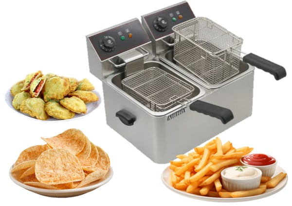 Аппарат используют в кафе, барах, ресторанах и фаст-фудах для приготовления разнообразных блюд: чипсы, картофель фри, грибы, овощи, мясо, рыбу (в кляре и без него), куриные ножки и крылышки, беляши, пончики, пирожки. Наибольшим преимуществом данной модели фритюрницы - возможность одновременного приготовления в двух емкостях двух различных продуктов, что значительно экономит время и повышает производительность работы.