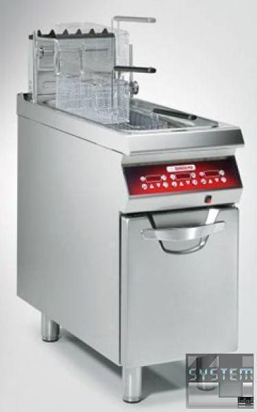 Фритюрница Angelo Po 091FR7GD на 1 ванную 22 л "V" формы c газовым нагревом и цифровым управлением на встроенном нейтральном нижнем отделении с автоматическим подъемом корзины относится к тепловой модульной линии ALPHA 900.