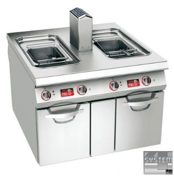 Газовая фритюрница на две емкости по 9 л каждая Angelo Po 10WFR4GD на нейтральном шкафу относится к тепловой модульной линии OMEGA 1100.