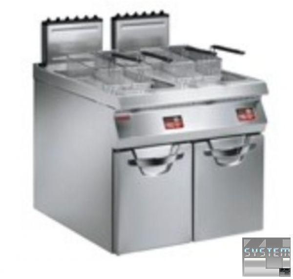Фритюрница Angelo Po 191FR2ID на 2 ванные по 22 л каждая c газовым нагревом и цифровым управлением на встроенном нейтральном нижнем отделении относится к тепловой модульной линии ALPHA 900.