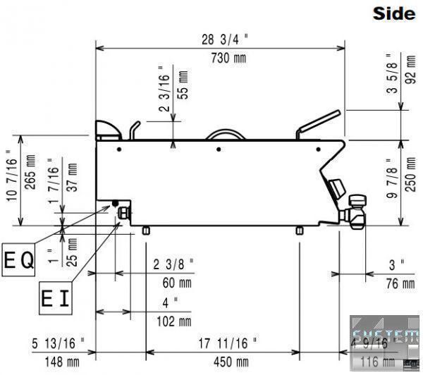 Электрическая фритюрница Electrolux e7freh2b00 имеет две ванны объемом по 7л маx и 5,5 л min. Два крана для слива масла, в комплекте с двумя корзинами, регулирование температуры 105-185°С, глубокая холодная зона, термостат безопасности, исполнение верхушка, толщина металла рабочей поверхности 1,5 мм. Фритюрница имеет габаритные размеры: 800мм (длина), 730мм (глубина), 250мм (высота) и весит 55кг. Устройство питается от трехфазной сети с напряжением 400В и частотой 50 Гц.