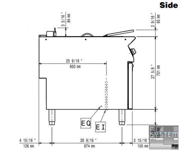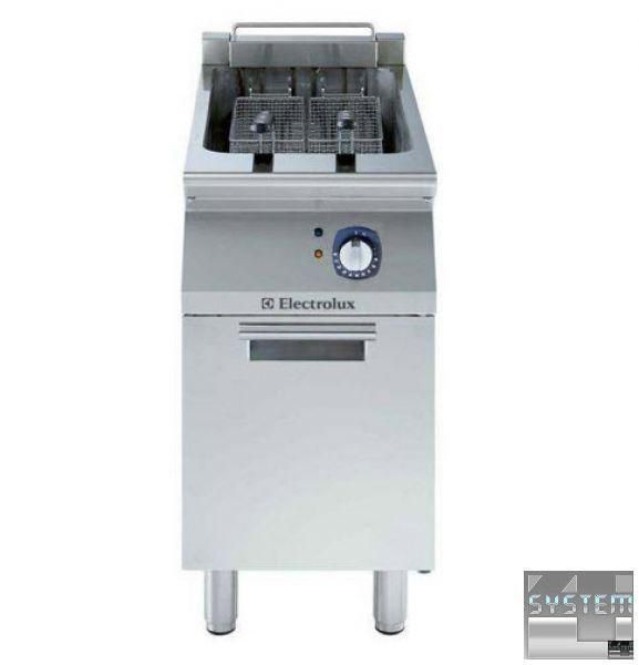Электрическая фритюрница Electrolux e9fred1hf0 имеет одну ванну объемом 20л mаx и 18л min. Внутренние нагревательные элементы, регулирование температуры 105...185°С, термостат безопасности, в комплекте с двумя корзинами 1/2, исполнение на закрытом основании. Рабочая поверхность толщиной 2мм из нерж. пищевой стали AISI304 с полировкой Scotch Brite. Фритюрница с базой имеет габаритные размеры: 400мм (длина), 930мм (глубина), 850мм (высота) и весит 57кг. Устройство питается от трехфазной сети с напряжением 400В и частотой 50 Гц.