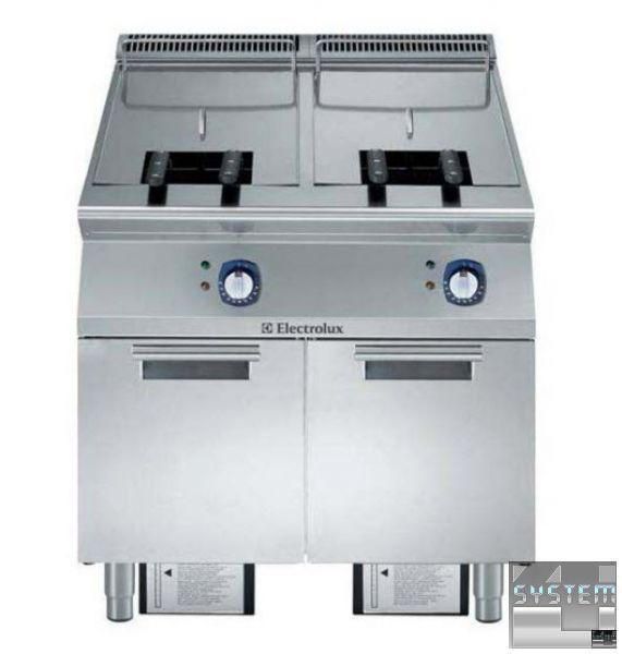 Электрическая фритюрница Electrolux e9freh2jf0 имеет две ванны объемом по 23л mаx и 21л min. Внутренние нагревательные элементы, регулирование температуры 105...185°С, глубокая холодная зона, термостат безопасности, инфракрасные нагревательные элементы, в комплекте с 4-мя корзинами 1/2, крышкой и контейнером для сбора жира, исполнение на закрытом основании. Рабочая поверхность толщиной 2мм из нерж. пищевой стали AISI304 с полировкой Scotch Brite. Фритюрница с базой имеет габаритные размеры: 800мм (длина), 930мм (глубина), 850мм (высота) и весит 115кг. Устройство питается от трехфазной сети с напряжением 400В и частотой 50 Гц.