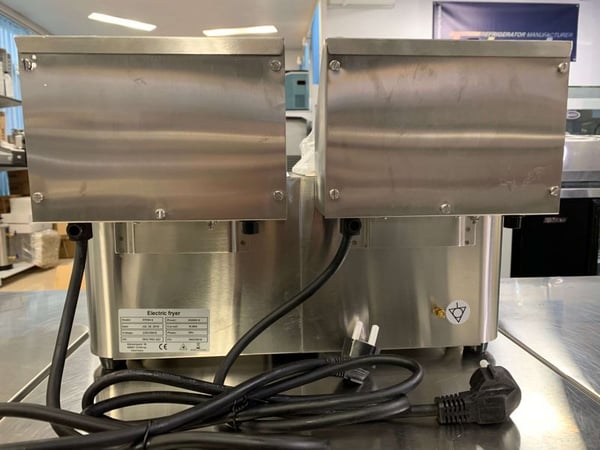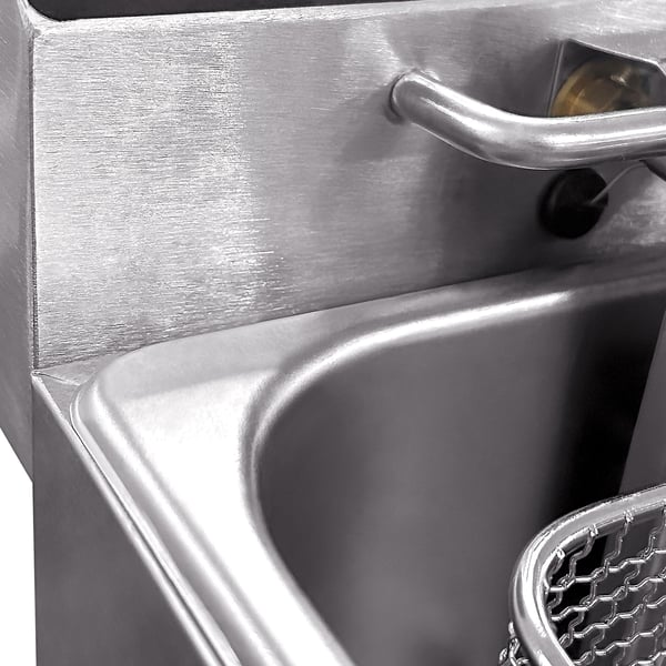 Двухпостовая фритюрница оснащена механическим блоком управления, боковыми ручками. Корпус и рабочие детали выполнены из нержавеющей стали.