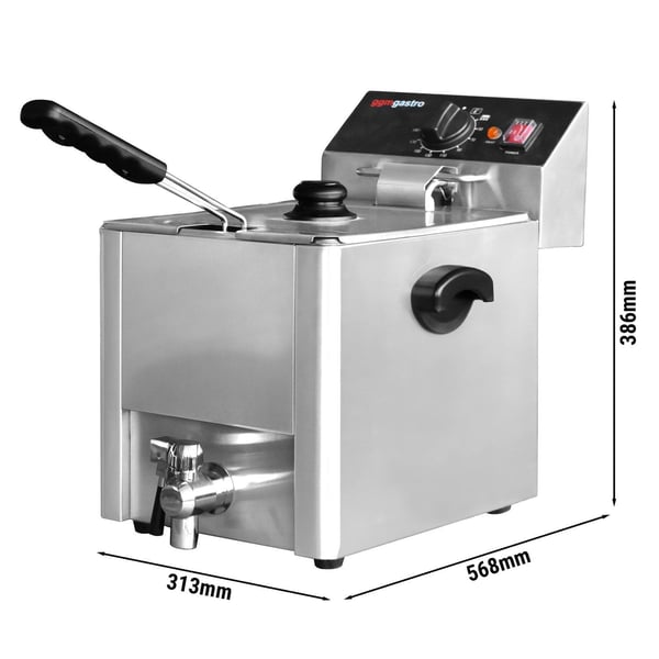 Электрическая фритюрница GGM EFH8 – это профессиональное кухонное оборудование, предназначенное для обжаривания различных продуктов (картофеля, мяса, рыбы, овощей и фруктов в кляре) в разогретом до определенной температуры, растительном или животном масле (фритюре). В результате приготовления, блюдо приобретает хрустящую золотистую корочку, при этом сохраняет достаточно влажности и получается особый ароматный вкус.
