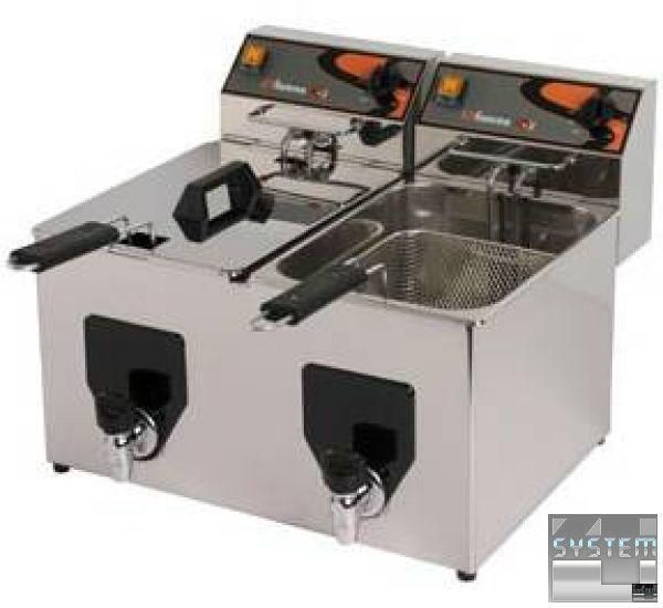 Фритюрница Fiamma FF10+10 готовит блюда во фритюре, которые уже успели стать неотъемлемой частью меню фаст-фудов, ресторанов и кафе. Готовить таким образом можно не только привычный картофель фри, но и птицу, овощи, мясо, рыбу, изделия из теста и некоторые фрукты. Для этого используется профессиональная фритюрница FF10+10 – оборудование для тепловой обработки продуктов в растительном масле (фритюре) или горячем жире. Устройство простое в содержании и использовании. Обеспечивает бесперебойную выдачу продукции даже в период максимальной нагрузки. Долговечна. Имеет низкие эксплуатационные расходы.