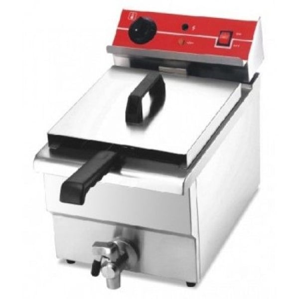 Настольная фритюрница изготовлена из нержавеющей стали, оснащена световыми индикаторами работы, с краном для слива масла. Данная модель с одной ванной на 14 литров, состоит из емкости, которая плотно накрывается крышкой, блока управления и съемной корзины., рабочая температура масла от +60 до +200°C. Пассерование продуктов осуществляется в сетчатой корзине из стальной проволоки.