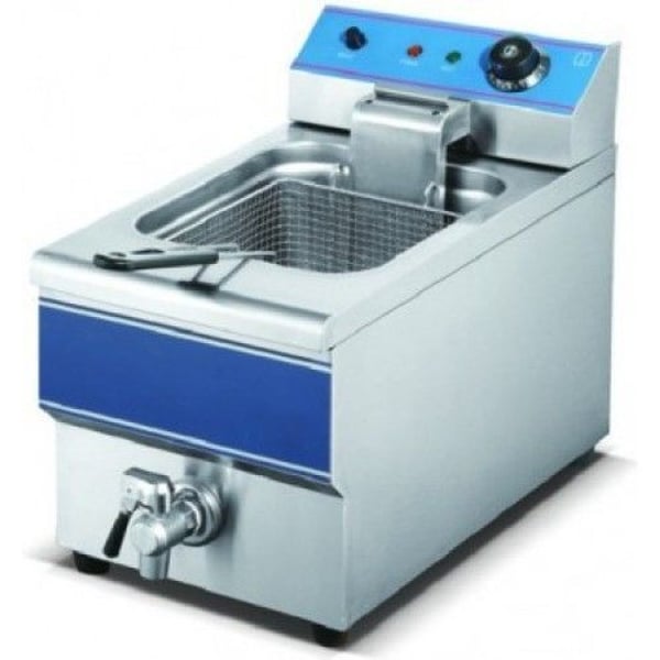 Настольная фритюрница изготовлена из нержавеющей стали, оснащена световыми индикаторами работы, с краном для слива масла. Данная модель с одной ванной на 7 литров, состоит из емкости, которая плотно накрывается крышкой, блока управления и съемной корзины, рабочая температура масла от +60 до +200°C. Пассерование продуктов осуществляется в сетчатой корзине из стальной проволоки. Корзина имеет устойчивую к высоким температурам ручку и крючки, с помощью которых она подвешивается на скобу для стекания масла. Съемные емкости легко и быстро разбираются, что значительно облегчает уход за ними и позволяют без усилий проводить санитароную очистку после использования фритюрницы. Габариты корзины 230х190х140 мм, напряжение 220В, мощность 3,5кВт.