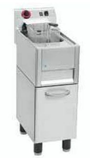 Модель оснащена специальными нагревательными элементами из нержавеющей стали, как и корпус оборудования. Надежный кран слива 3/4. Размеры корзины кухонного инвентаря составляет 210х235х100 мм. Внутренний контейнер для жира с сетчатой поверхностью.