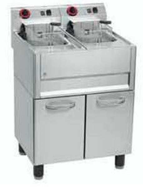 Модель оснащена специальными нагревательными элементами из нержавеющей стали, как и корпус оборудования. Надежный кран слива 3/4. Размеры корзины кухонного инвентаря составляет 210х235х100 мм. Внутренний контейнер для жира с сетчатой поверхностью.