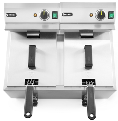 Фритюрница Hendi 209301 – профессиональный кухонный аппарат, который позволит обжарить разнообразные кулинарные изделия путем погружения их в большой объем горячего масла. В результате приготовления, блюдо приобретает хрустящую золотистую корочку, при этом сохраняет достаточно влажности и получается особый ароматный вкус. Данный аппарат используют в кафе, барах, ресторанах и фаст-фудах для приготовления разных блюд: чипсов, картофеля фри, грибов, овощей, мяса, рыбы (в кляре и без него), куриных ножек и крылышек, беляшей, пончиков, пирожков.