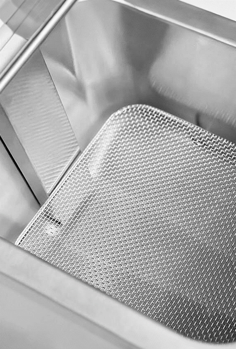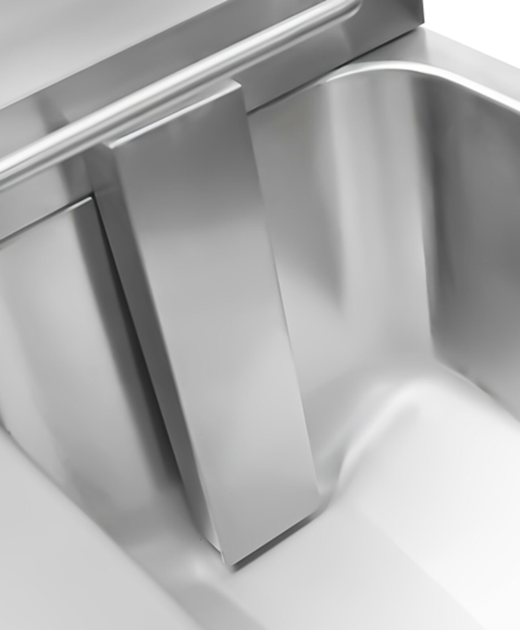 Корпус и рабочие детали выполнены из нержавеющей стали. Стальная прочная корзина оборудована термоизолированной ручкой. Защитная сетка внутри резервуара. Аппарат легко раскладывается для санитарной обработки.