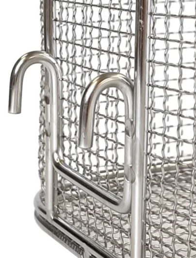 Корпус и рабочие детали выполнены из нержавеющей стали. Стальная прочная корзина оборудована термоизолированной ручкой. Защитная сетка внутри резервуара.
