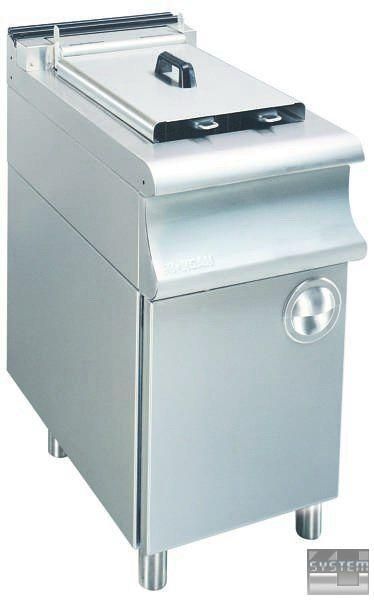 Сделана из сатинированного хромоникелевого листа 18/8 н/с. Проволочные корзины пригодны для процесса жарки, покрыты в соответствии с условиями здравоохранения и оснащены рукояткой для защиты от накаливания. Маслосборник с зоной охлаждения предназначен для сбора сгоревшего масла и осадков. Снизу расположен шаровой клапан 3/4" для слива масла из резервуара. Отдельное использование резервуаров посредством ручек управления. Температура регулируется в пределе 90 - 185 ° C с помощью термостатического многоуровневого вентиля, автоматическое зажигание и растопочный факел. Система безопасности прекращает подачу газа в случае потухания пламени. Может быть использован СНГ или природный газ, и преобразование происходит без какой-либо модификации. Ограничительный термостат для безопасности в случае перегрева. Газовые горелки трубчатого типа пригодны для использования различного типа газа. Регулируемая опора трубчатого типа из н/с и корпусные листы толщиной 2 мм. Дверные ручки из н/с.